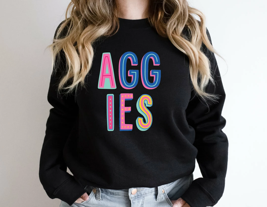 Wholesale ๐ Hustle And Heart NC Aggies Colorful Graphic Tee Colorful Block Mascots ๐ฏ