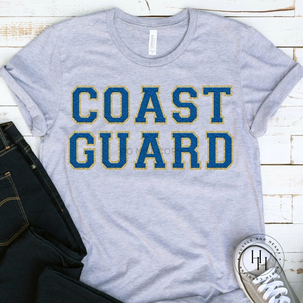 Outlet ๐คฉ Hustle And Heart NC Coast Guard Sapphire Blue/Gold Faux Chenille Letters Graphic Tee โค๏ธ