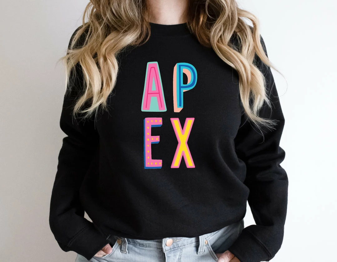 Best Sale š Hustle And Heart NC Colorful Block Mascots Apex Colorful Graphic Tee š