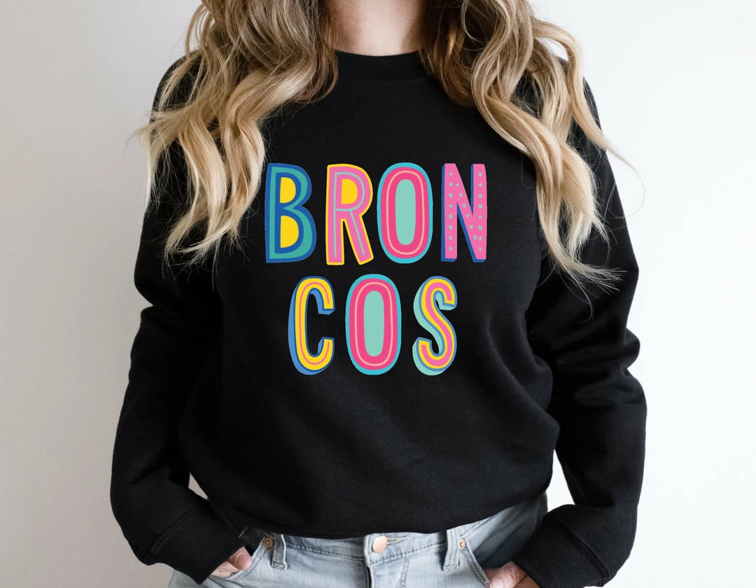 Top 10 👏 Hustle And Heart NC Colorful Block Mascots Broncos Colorful Graphic Tee 😍