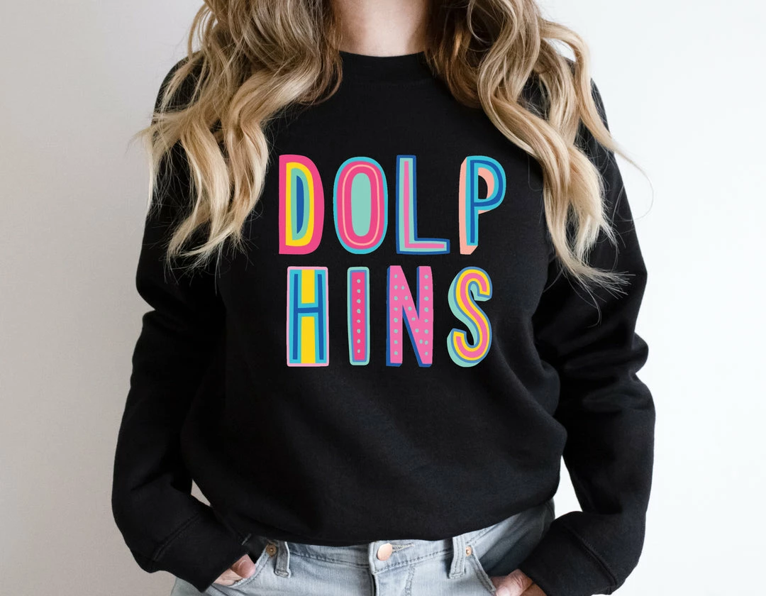 Hot Sale 🥰 Hustle And Heart NC Colorful Block Mascots Dolphins Colorful Graphic Tee 🛒