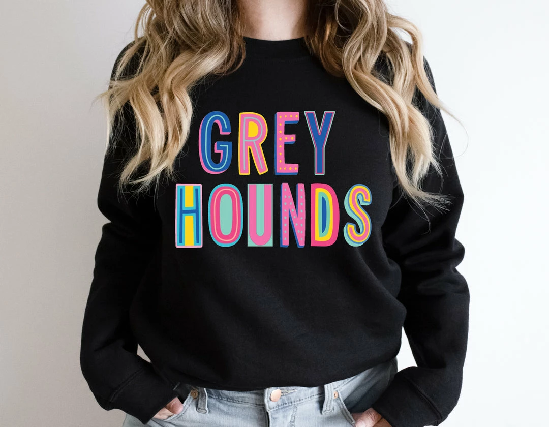 Brand new 🤩 Hustle And Heart NC Colorful Block Mascots Greyhounds Colorful Graphic Tee 🌟