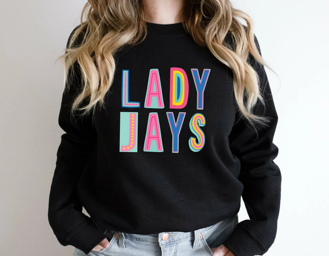 Wholesale ๐ Hustle And Heart NC Colorful Block Mascots LadyJays Colorful Graphic Tee ๐