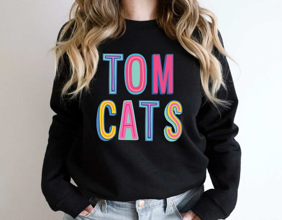 New ❤️ Hustle And Heart NC Colorful Block Mascots Tomcats Colorful Graphic Tee ⌛