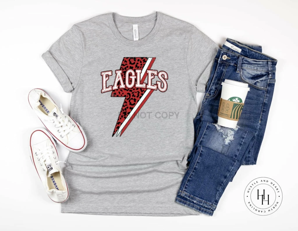 Coupon 🔥 Hustle And Heart NC Eagles Red Leopard Lightning Bolt Graphic Tee 🌟