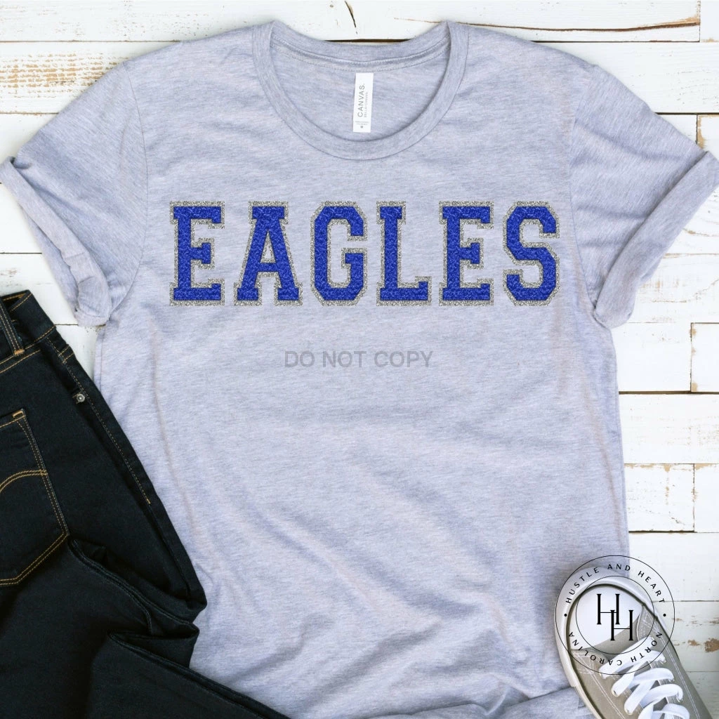 Buy 👍 Hustle And Heart NC Eagles Royal/Silver Faux Chenille Letters Graphic Tee 😀