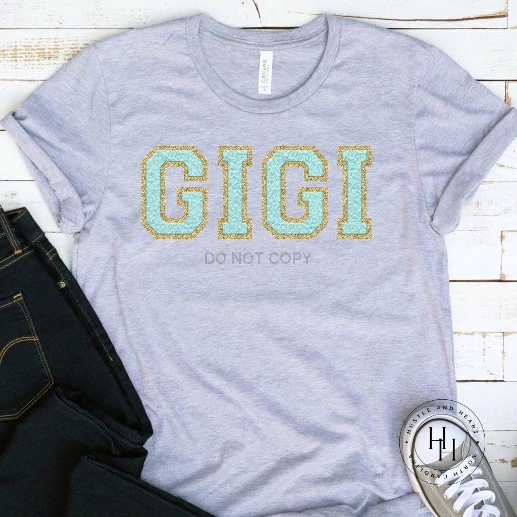 Flash Sale ๐ Hustle And Heart NC Faux Chenille And Glitter Letter Patch Tees GIGI Mint/Gold Faux Chenille Letters Graphic Tee ๐