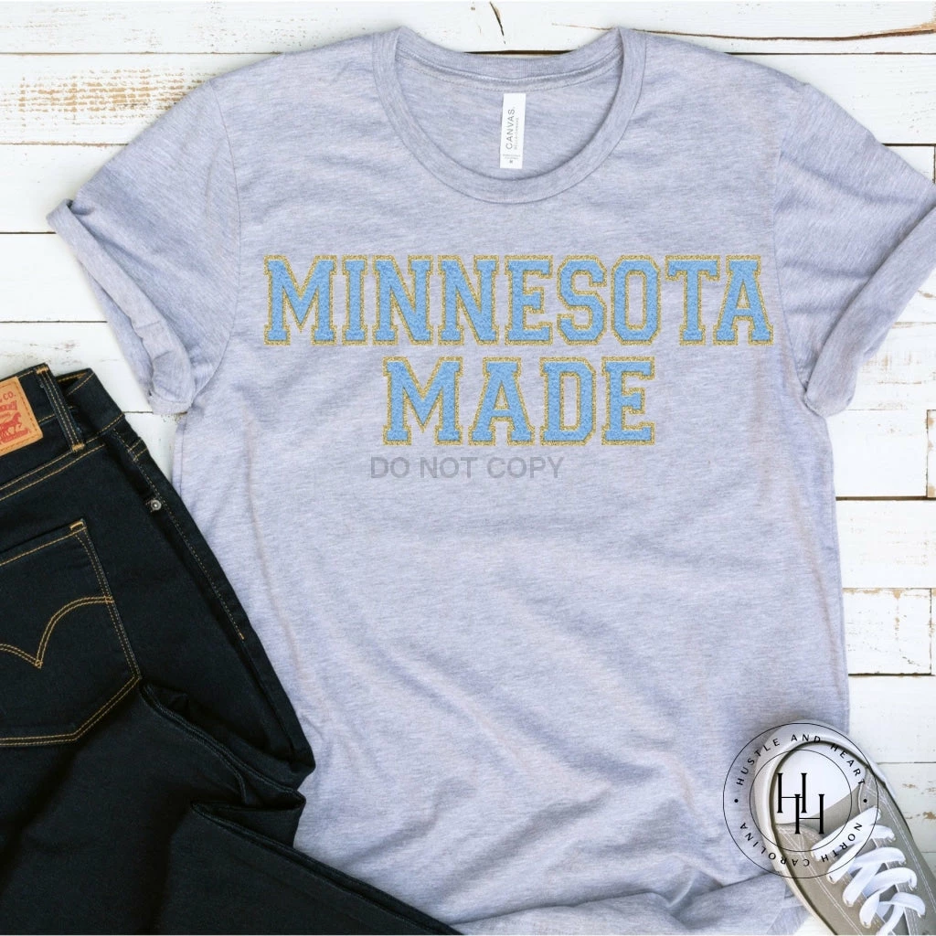 Best deal 😉 Hustle And Heart NC Faux Chenille And Glitter Letter Patch Tees Minnesota Made Grey Tee Faux Chenille Letters Graphic Tee ❤️