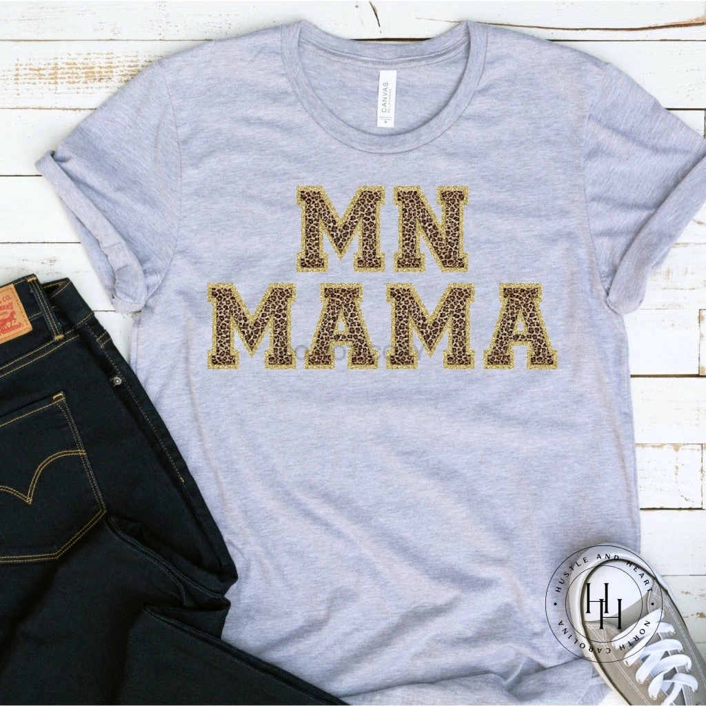 Hot Sale โ๏ธ Hustle And Heart NC Faux Chenille And Glitter Letter Patch Tees MN Mama Grey Faux Chenille Letters Graphic Tee ๐