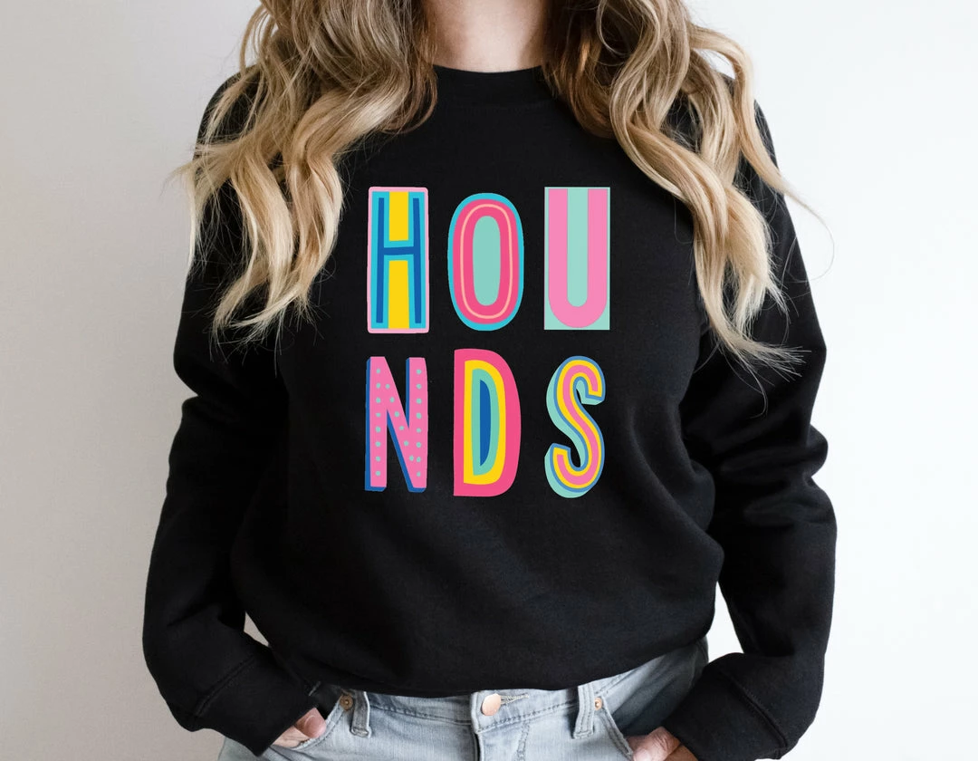 Outlet โค๏ธ Hustle And Heart NC Hounds Colorful Graphic Tee Colorful Block Mascots ๐