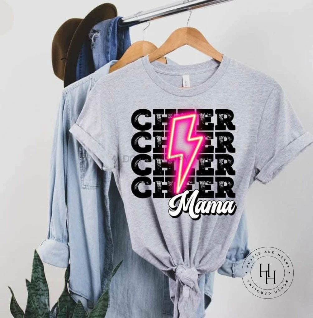 Discount 👍 Hustle And Heart NC Lightning Bolt Designs Cheer Mama Pink Neon Lightning Bolt Graphic Tee 😍