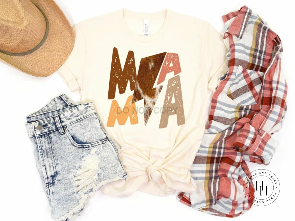 Budget ⌛ Hustle And Heart NC Mama CowHide Lightning Bolt Graphic Tee 🔥