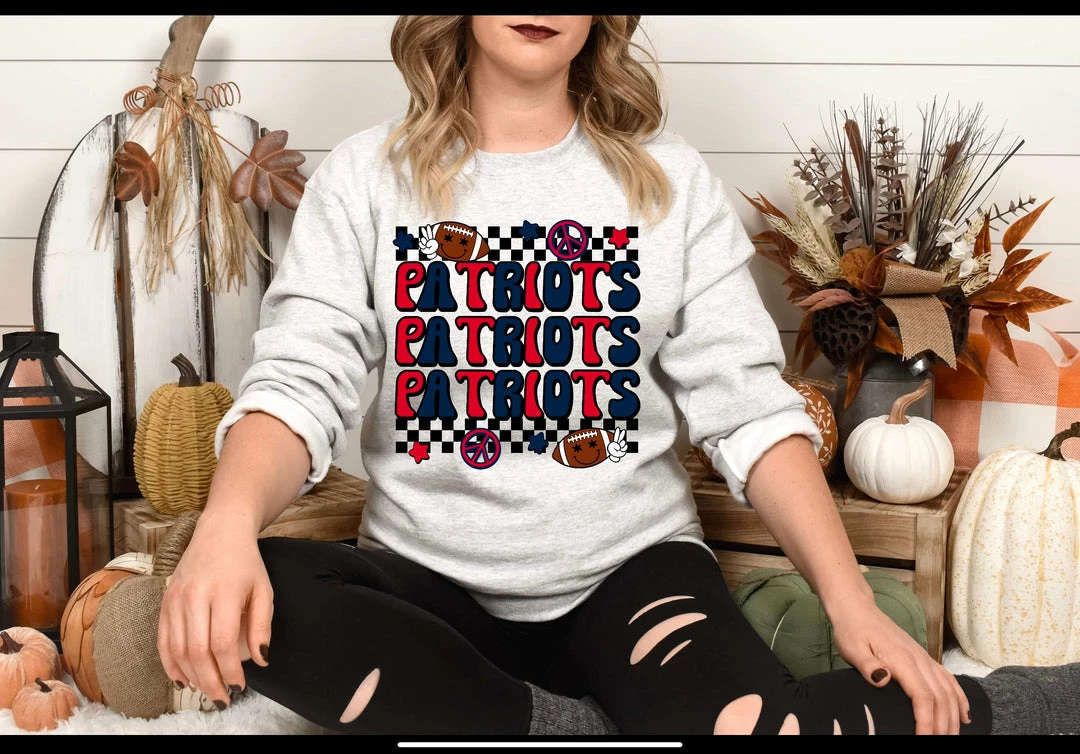 Deals ❤️ Hustle And Heart NC Patriots Retro Stacked Mascot Graphic Tee 👍