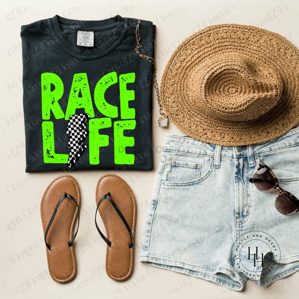 Outlet 😍 Hustle And Heart NC Race Life Lime Green Lightning Bolt Graphic Tee Lightning Bolt Designs 🤩