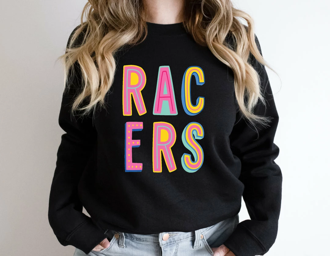 New π Hustle And Heart NC Racers Colorful Graphic Tee Colorful Block Mascots π