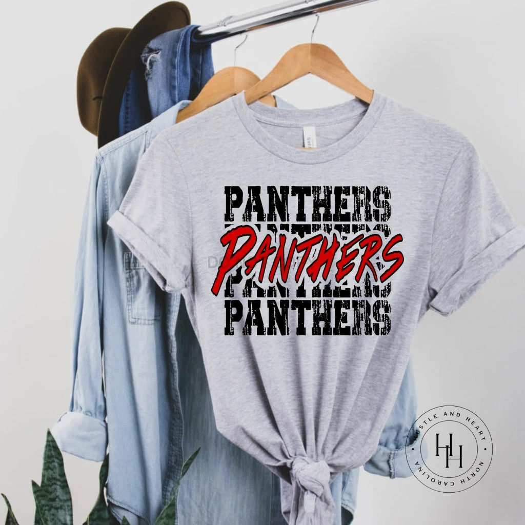 Outlet ๐Ÿ˜€ Hustle And Heart NC Stacked Mascot Designs Panthers Red Stacked Mascot Graphic Tee ๐Ÿ›’