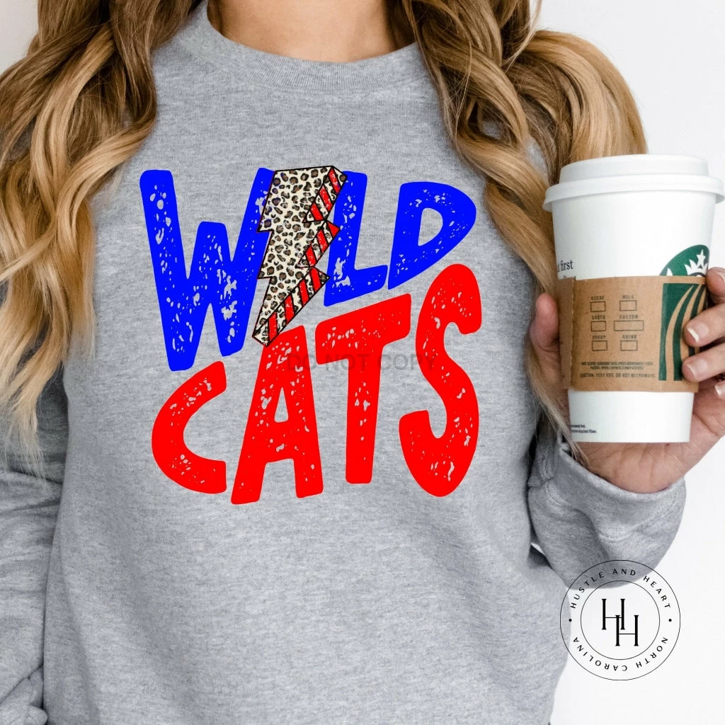 Outlet ✨ Hustle And Heart NC Wildcats Red/Royal Blue Lightning Bolt Graphic Tee 👍