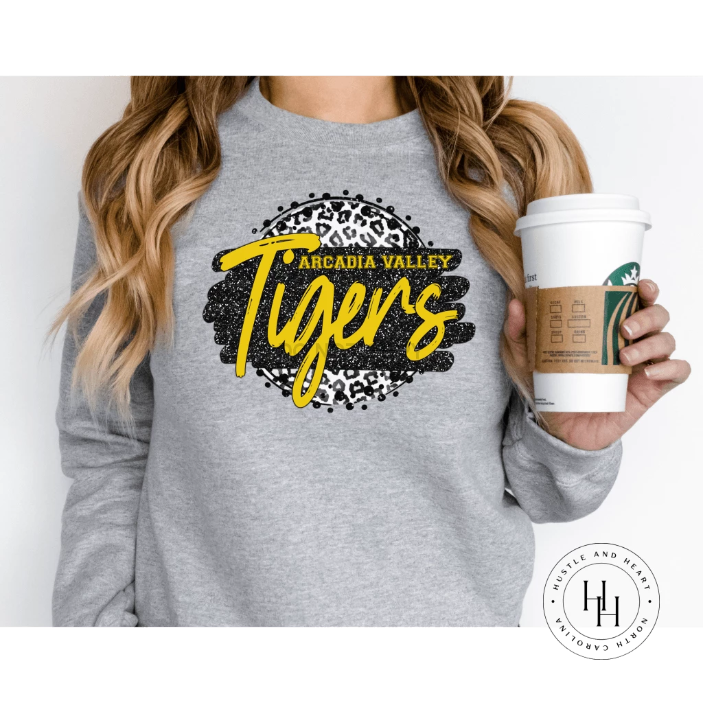 Promo 😉 Hustle & Heart NC Arcadia Valley Tigers Grey Leopard Graphic Tee 🔥