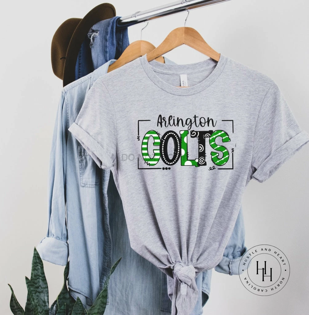 Budget 👏 Hustle & Heart NC Arlington Colts Doodle Graphic Tee School Doodle Designs 🔔