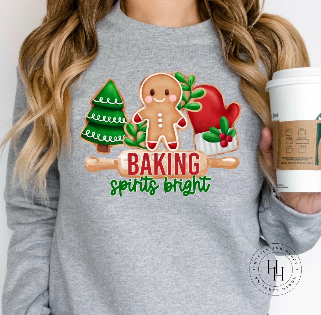 Outlet ❤️ Hustle & Heart NC Baking Spirits Bright Graphic Tee 🎄 Christmas 🛒