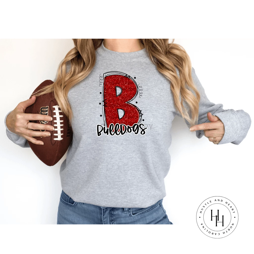 Best Pirce 😍 Hustle & Heart NC Bulldogs Red Glitter Varsity Doodle School Doodle Designs 🎉