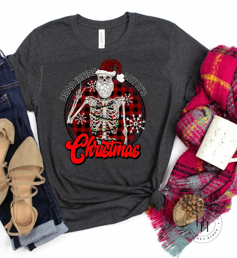 Budget πŸ₯° Hustle & Heart NC Dead Inside But It’s ❄ Christmas Graphic Tee πŸ’―