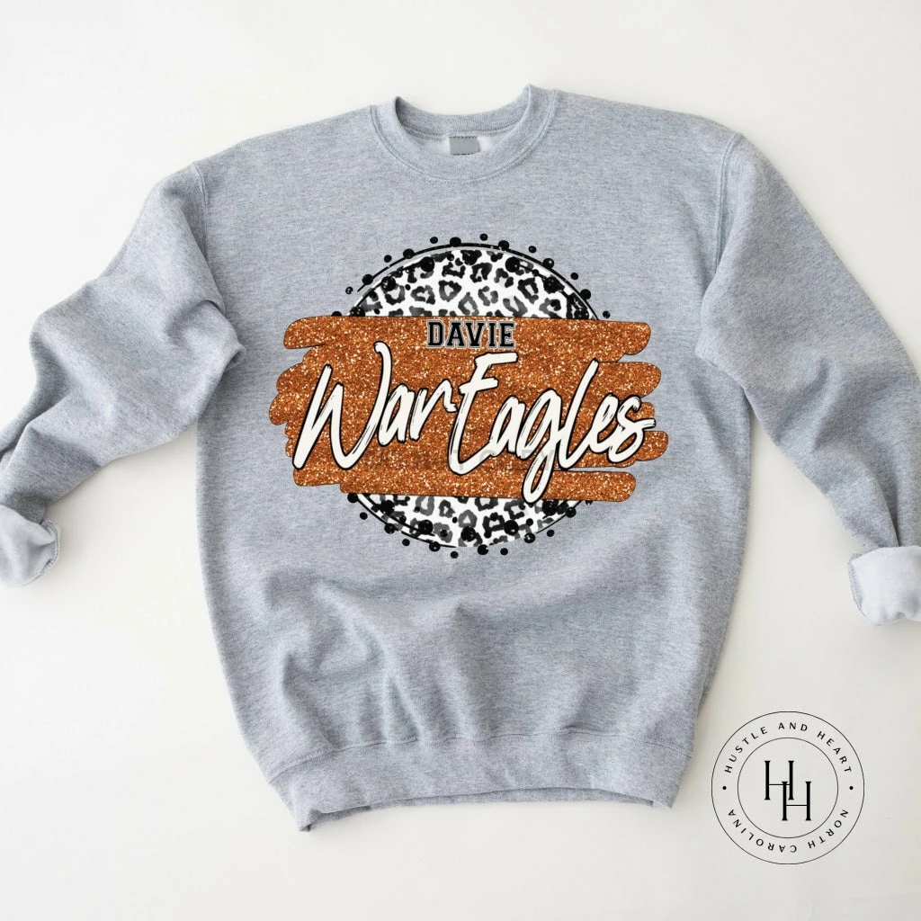 Wholesale šŸ”” Hustle & Heart NC Faux Glitter Leopard Circle Designs Davie War Eagles Grey Leopard Graphic Tee āŒ›