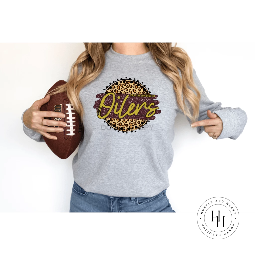 Outlet ๐ŸŽ Hustle & Heart NC Faux Glitter Leopard Circle Designs East Alton Oilers Tan Leopard Circle Graphic Tee ๐ŸŒŸ