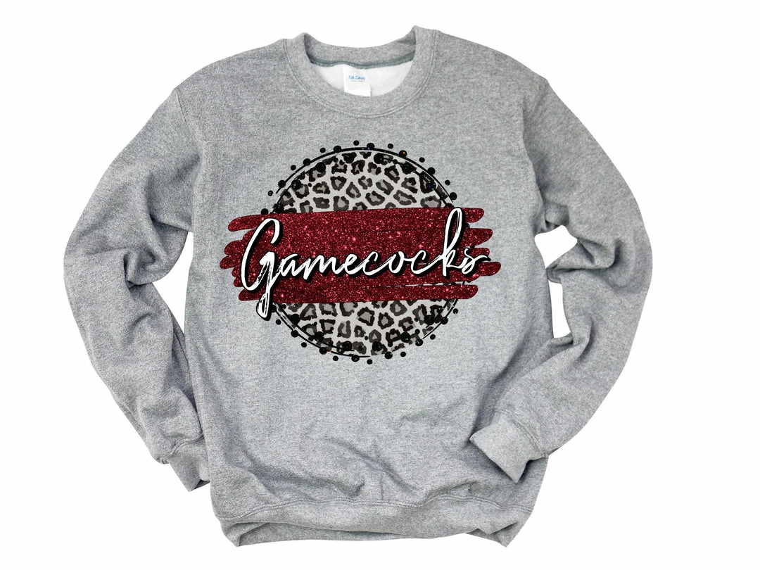 New βοΈ Hustle & Heart NC Indians Red Faux Glitter Grey Leopard Circle Graphic Tee π