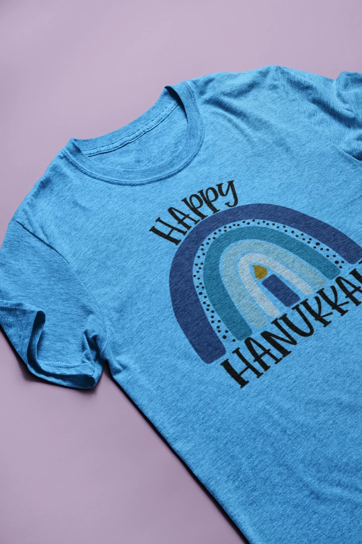 Deals ⌛ Hustle & Heart NC Happy Hanukkah Rainbow Holiday Graphic Tee 🤩