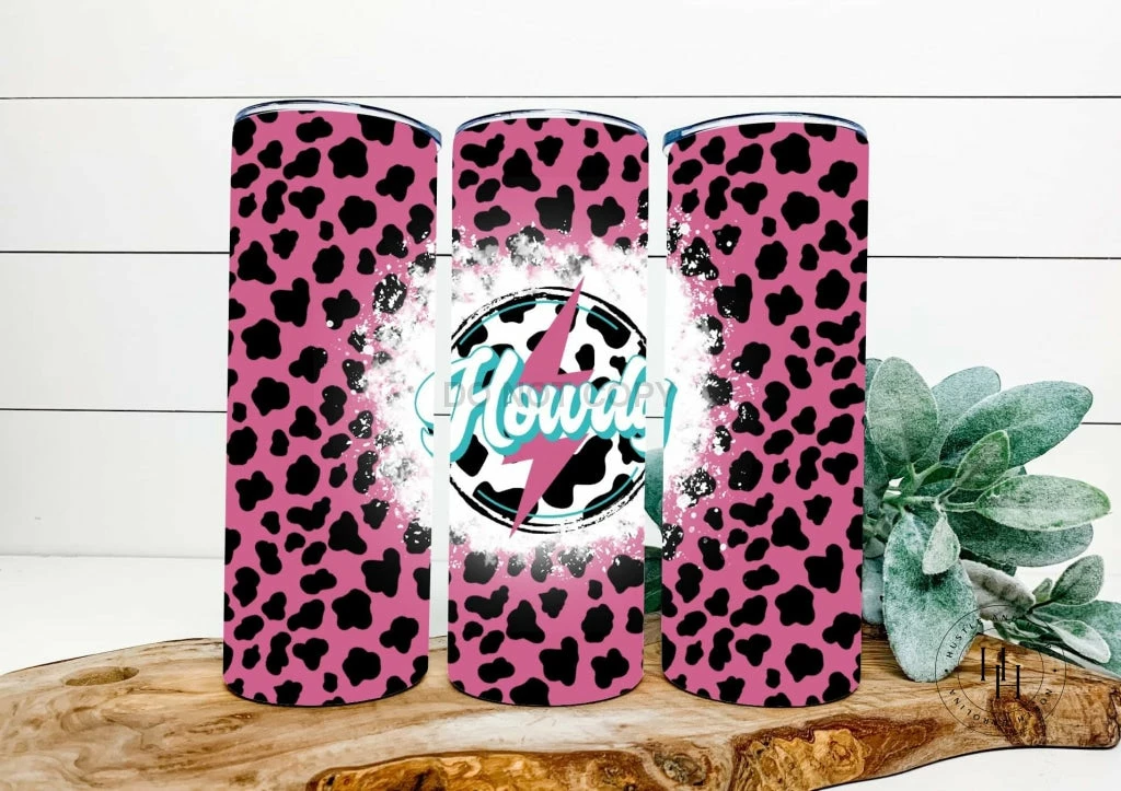 Hot Sale ๐Ÿ›’ Hustle & Heart NC Howdy Cow Print Completed 20oz Skinny Tumbler Tumbler Of The Week ๐Ÿฅฐ