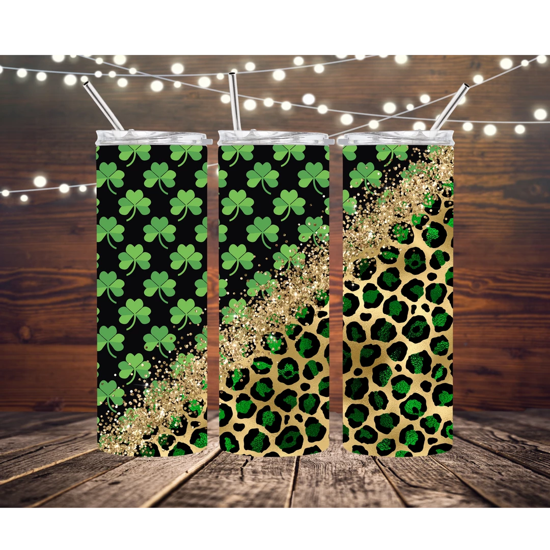 Promo ๐Ÿ’ฏ Hustle & Heart NC Leopard And Shamrocks On Black St Patricks Day 20oz Skinny Tumbler Tumbler Of The Week โค๏ธ