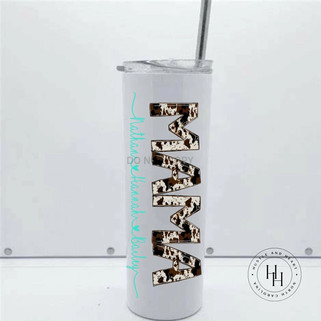 Hustle & Heart NC Mama Cowhide Personalized Completed 20oz Skinny Tumbler Tumbler Of The Week
