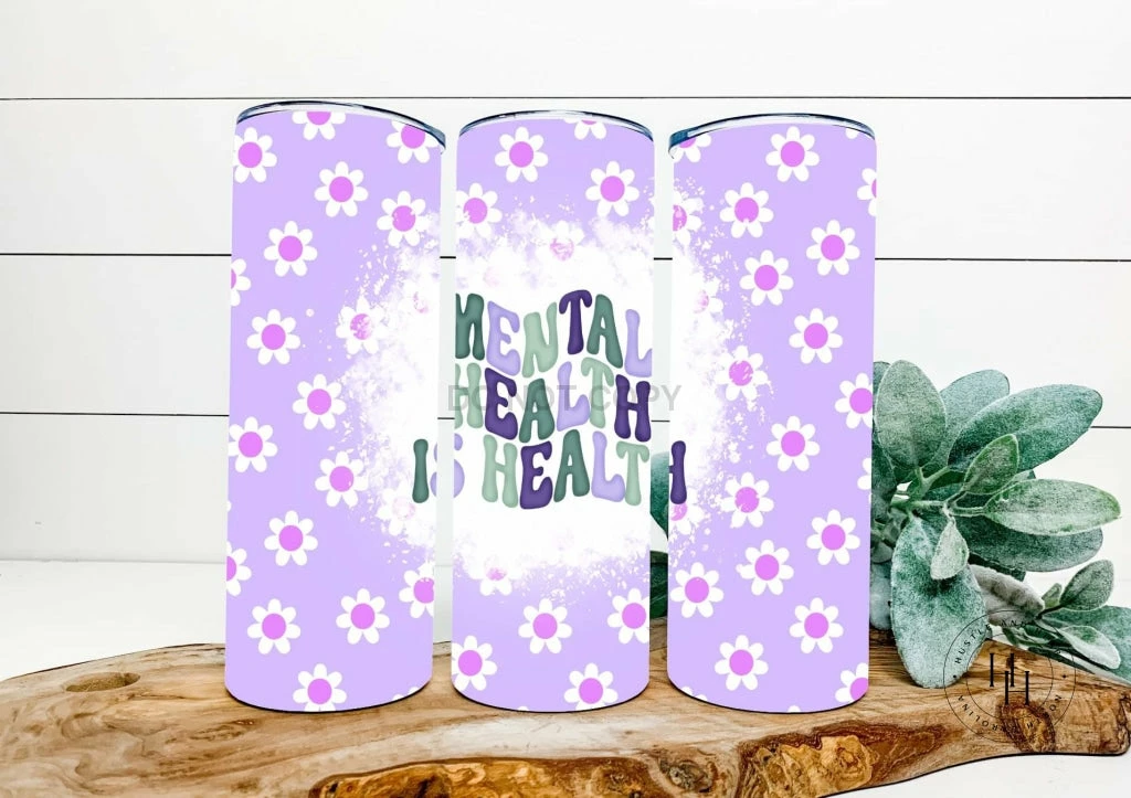 Deals 😍 Hustle & Heart NC Mental Health Is Health Retro Completed 20oz Skinny Tumbler Tumbler Of The Week 💯