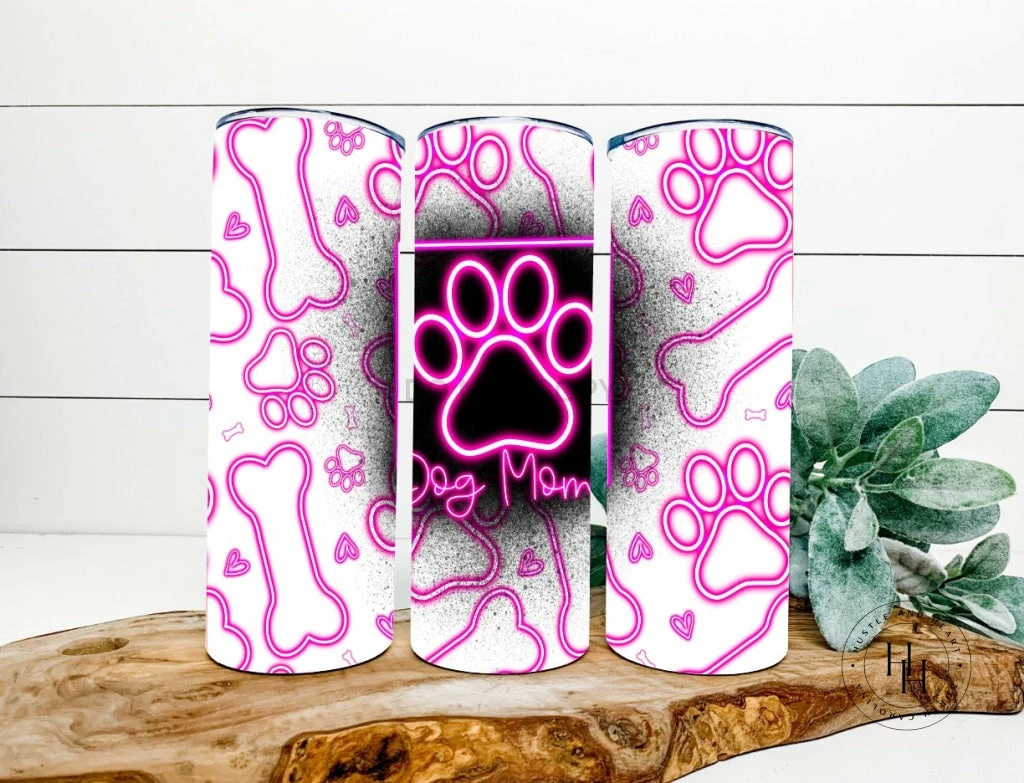 Hustle & Heart NC Neon Pink Dog Mom Completed 20oz Skinny Tumbler