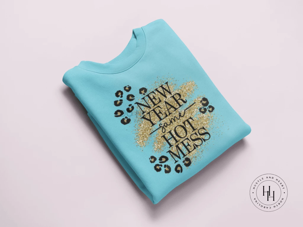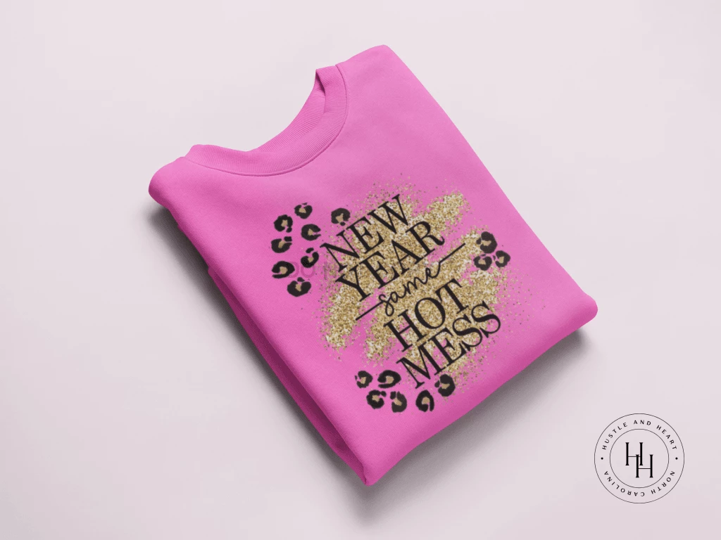 Outlet ๐Ÿ‘ Hustle & Heart NC New Year Same Hot Mess Gold Faux Glitter And Leopard Celebration Graphic Tee Or Sweatshirt ๐Ÿ’ฏ