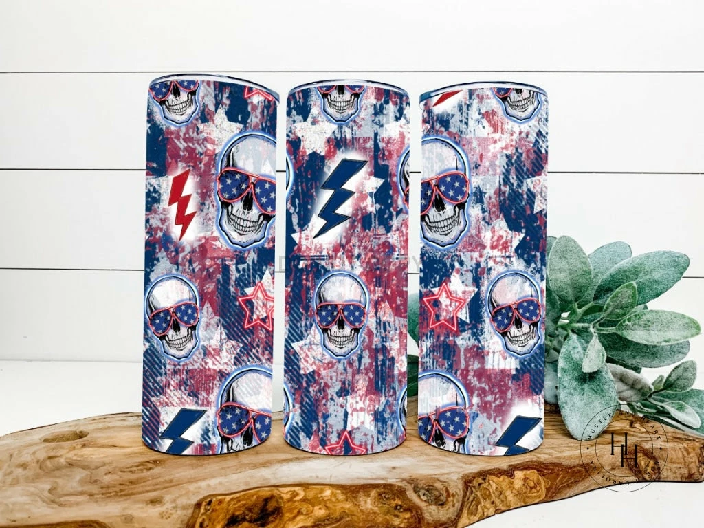 Hustle & Heart NC Patriotic Skullies Completed 20oz Skinny Tumbler Tumbler Of The Week