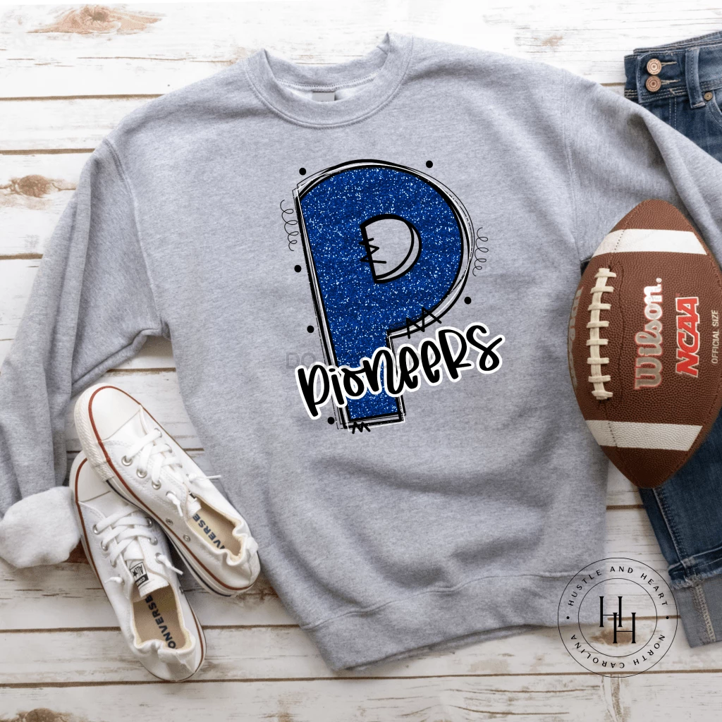 Cheapest 💯 Hustle & Heart NC Pioneers Blue Glitter Varsity Doodle 💯