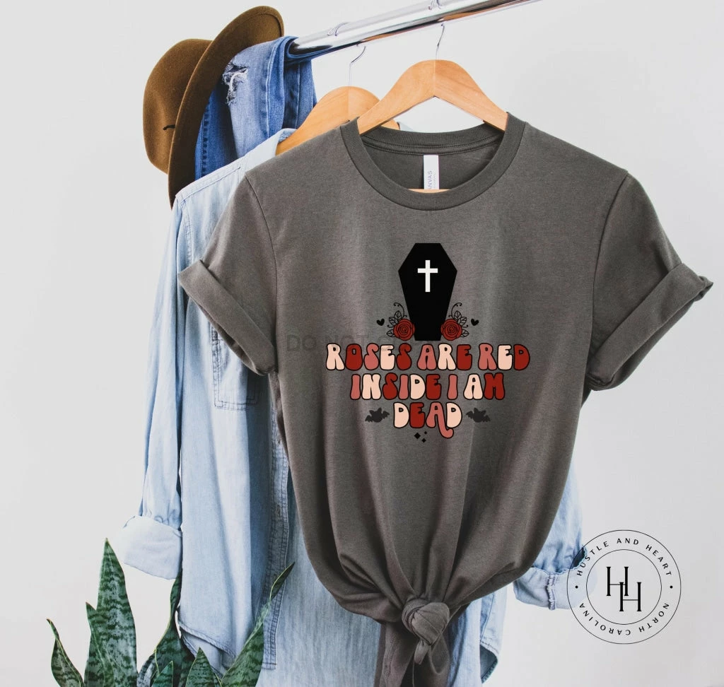 Outlet ๐Ÿฅฐ Hustle & Heart NC Roses Are Red Inside I Am Dead Graphic Tee NSFW & Adult Humor ๐Ÿ›’