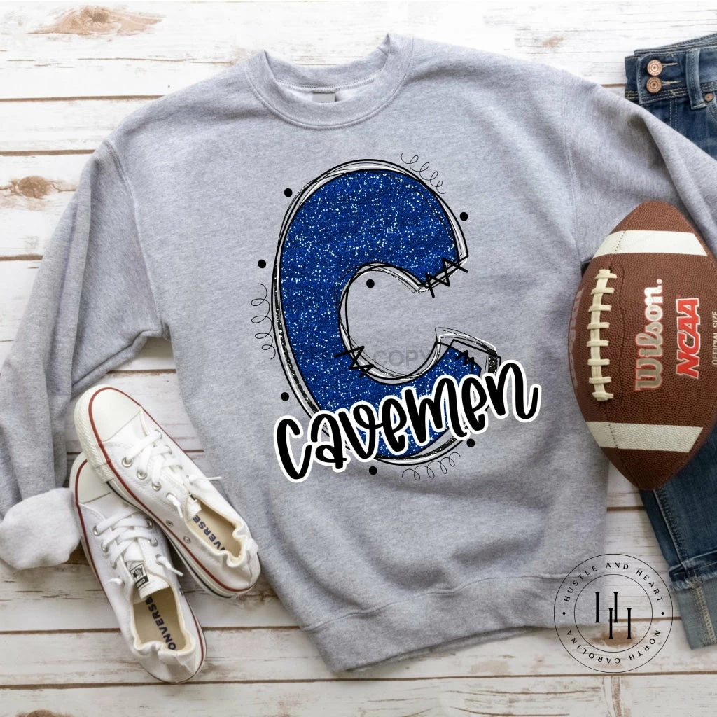 Cheapest โœ”๏ธ Hustle & Heart NC School Doodle Designs Cavemen Blue Glitter Varsity Doodle ๐Ÿงจ