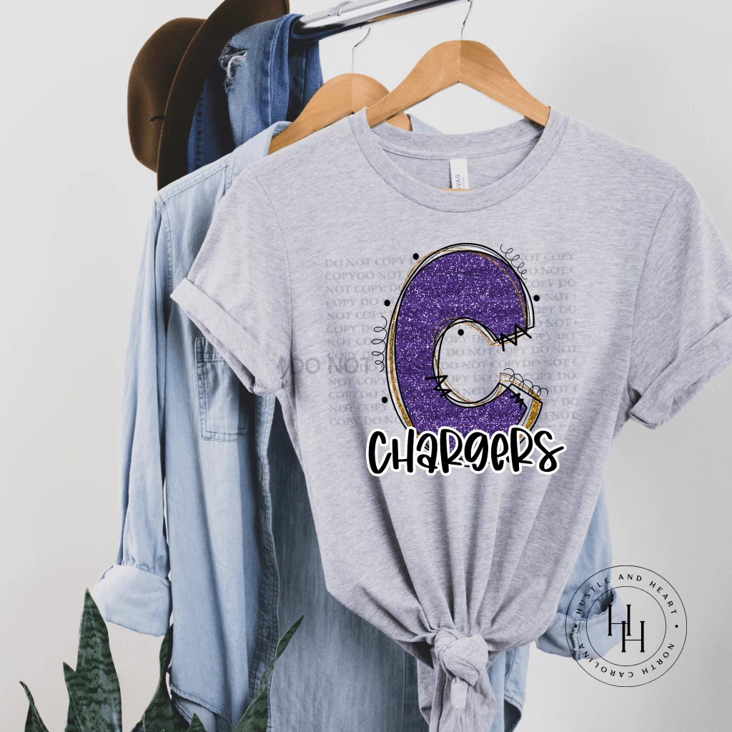 Deals ✨ Hustle & Heart NC School Doodle Designs Chargers Purple Glitter Varsity Doodle 🔔