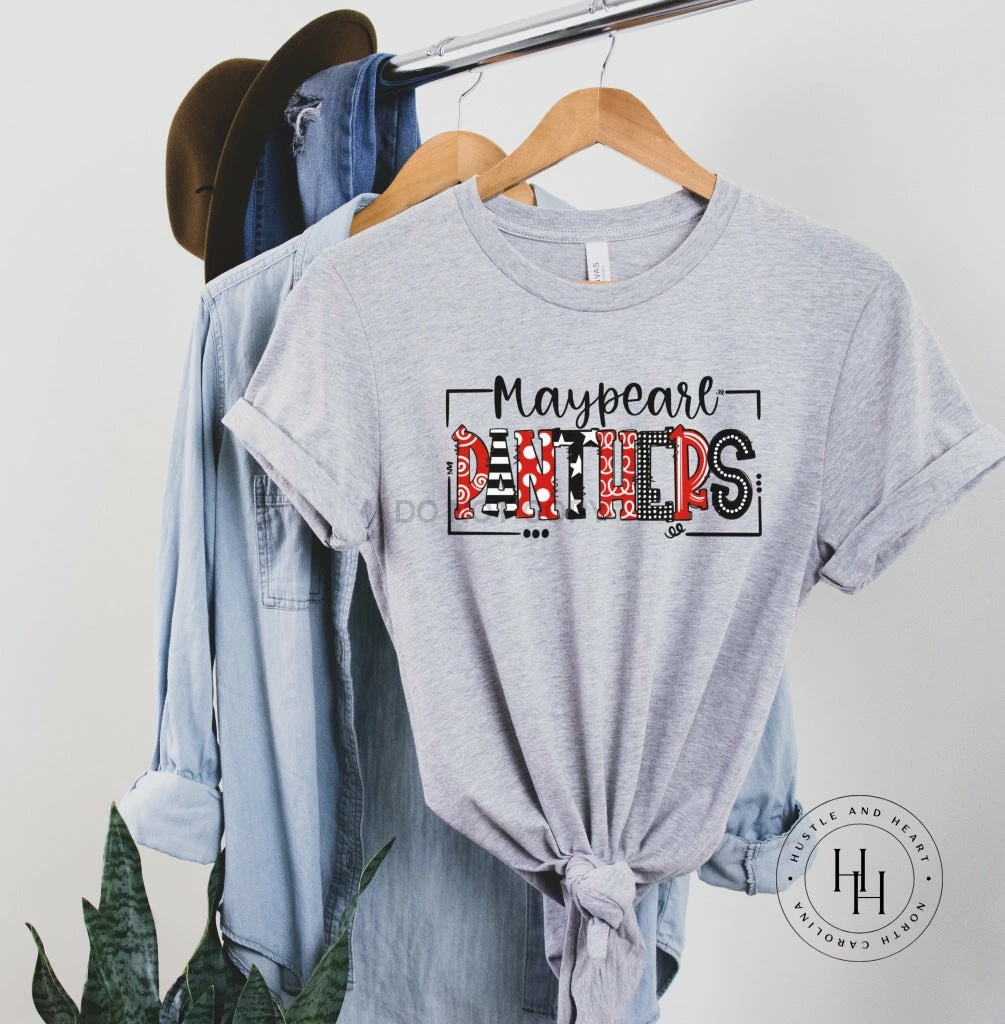 New ✨ Hustle & Heart NC School Doodle Designs Maypearl Panthers Doodle Graphic Tee ✨
