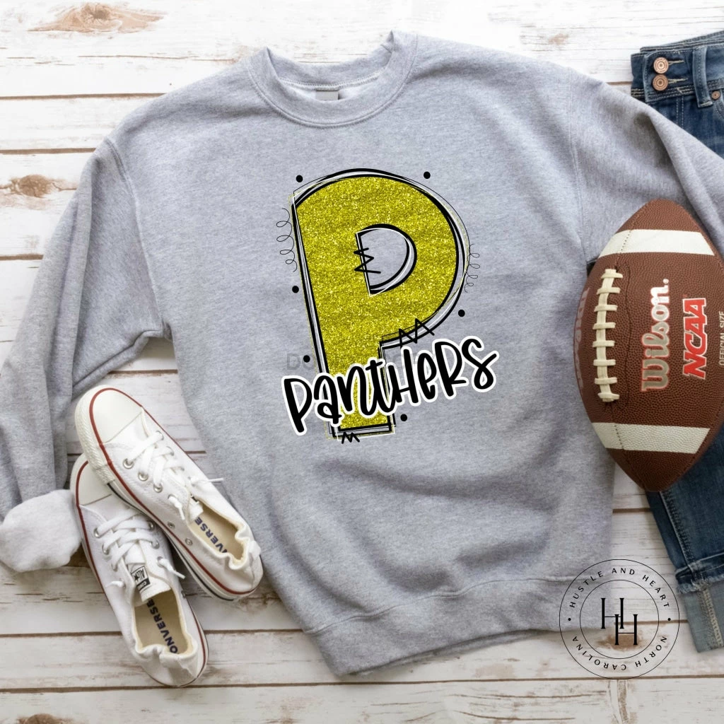 Cheapest 🥰 Hustle & Heart NC School Doodle Designs Panthers Yellow Glitter Varsity Doodle 🧨