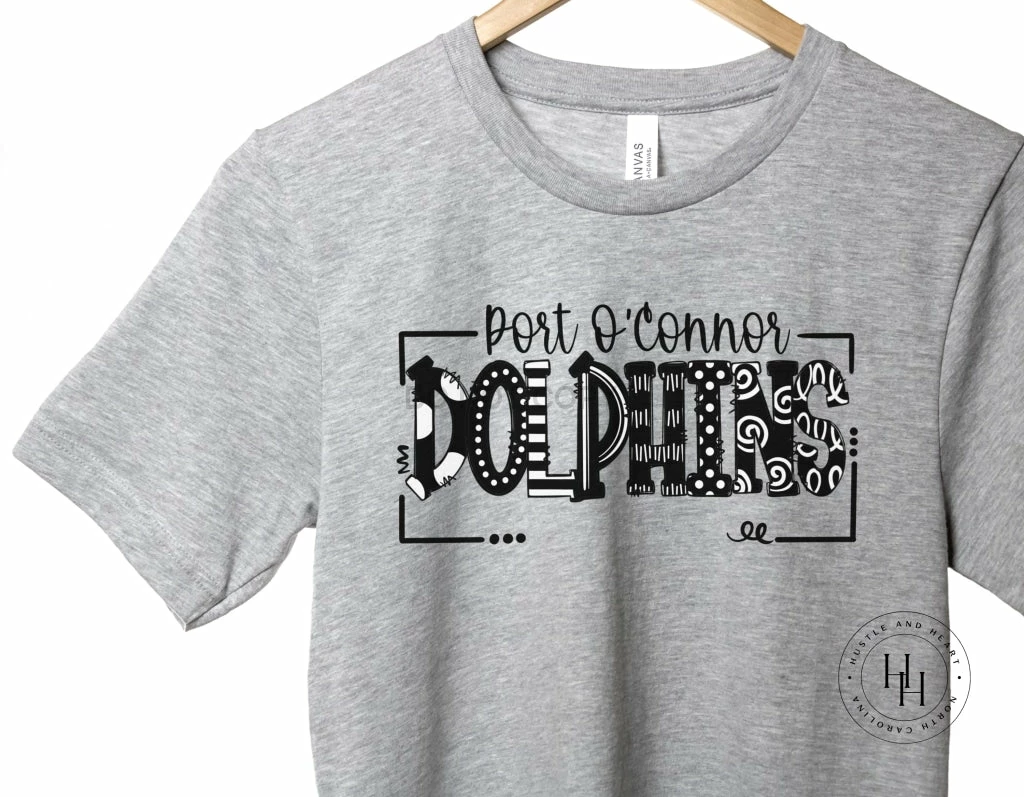 Discount 😉 Hustle & Heart NC School Doodle Designs Port O’Connor Dolphins Doodle Graphic Tee 🧨
