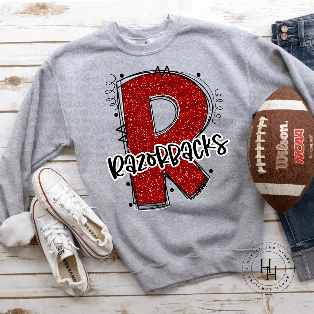 Buy ✔️ Hustle & Heart NC School Doodle Designs Razorbacks Red Glitter Varsity Doodle 😍