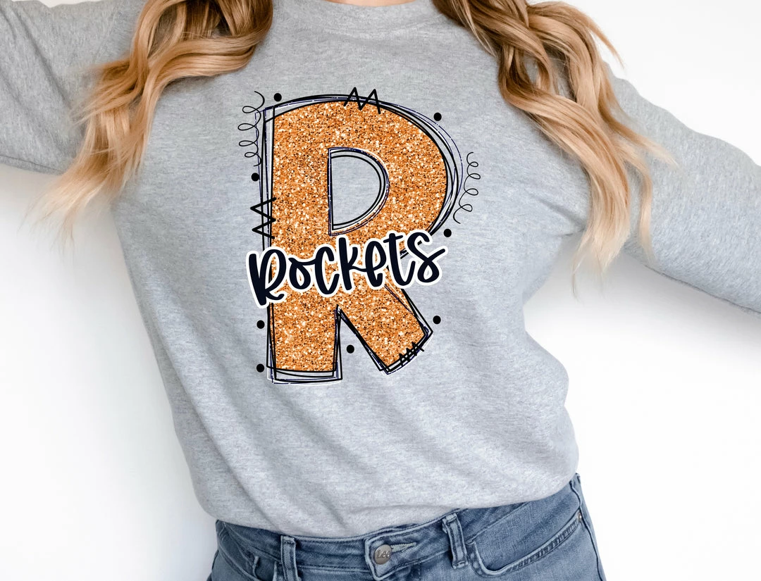 Top 10 ⌛ Hustle & Heart NC School Doodle Designs Rockets Glitter Varsity Doodle ⭐