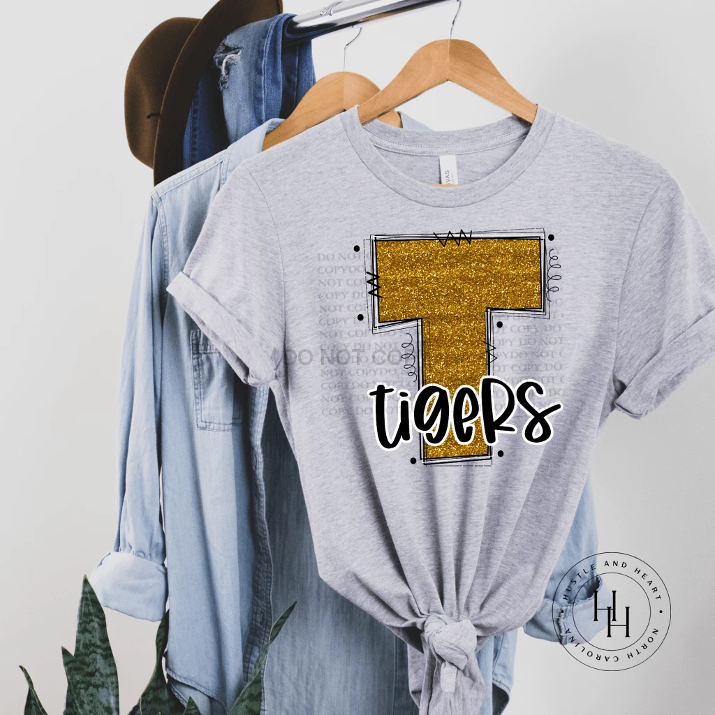 New āŒ› Hustle & Heart NC School Doodle Designs Tigers Gold/Black Glitter Varsity Doodle ⭐