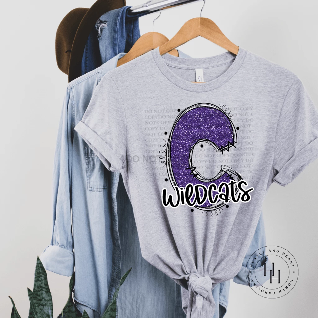 Deals โœจ Hustle & Heart NC School Doodle Designs Wildcats Purple Glitter Varsity Doodle ๐Ÿงจ