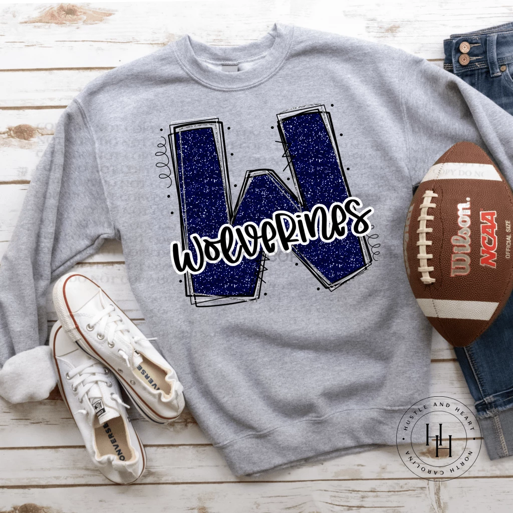 Buy 💯 Hustle & Heart NC School Doodle Designs Wolverines Navy Glitter Varsity Doodle 😍