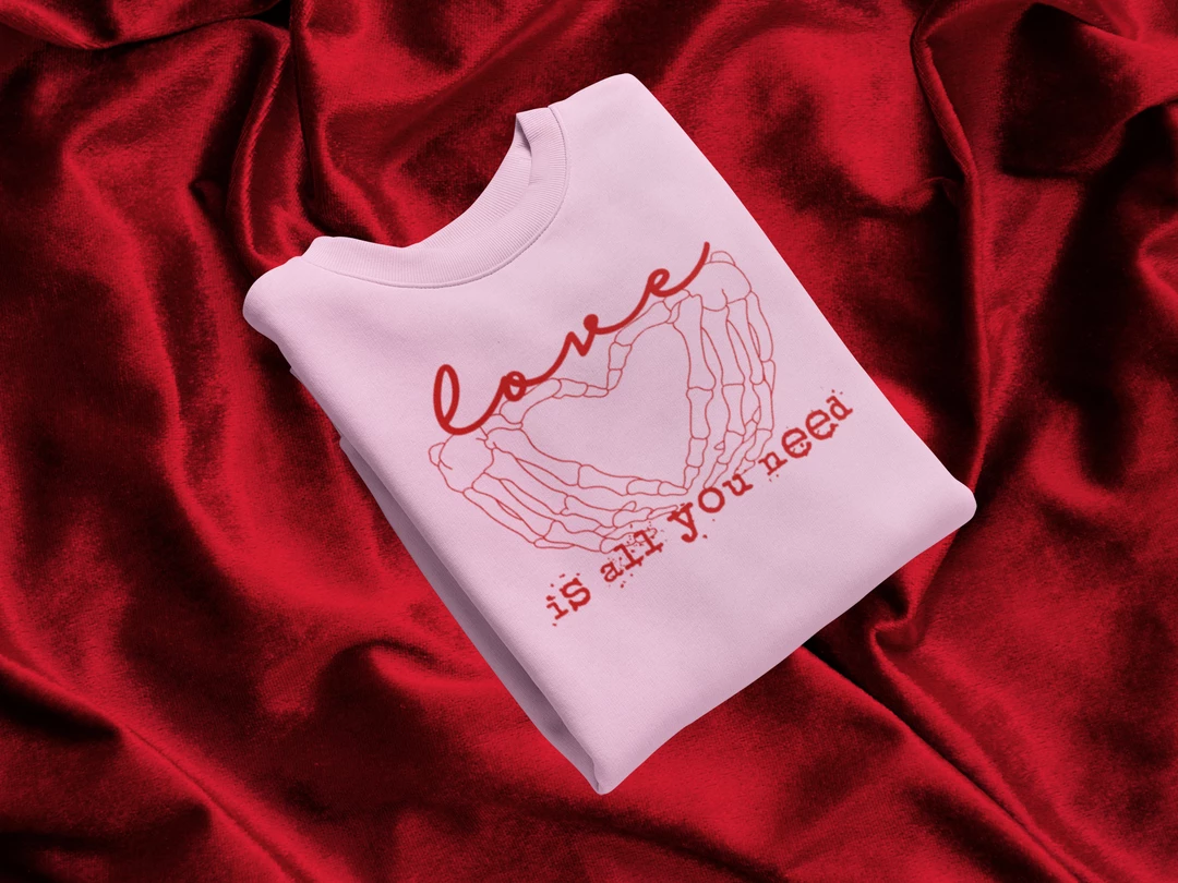 Brand new āŒ› Hustle & Heart NC Skellie Hands Love Is All You Need License Plate Pink Valentine’s Day Graphic Tee šŸŽ‰